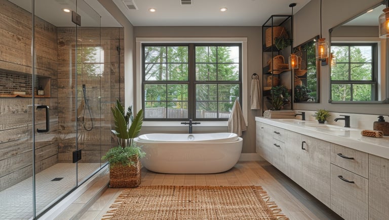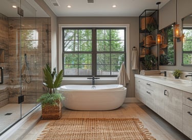 Custom bathroom designs, tile work, vanities, lighting, and fixture installations.